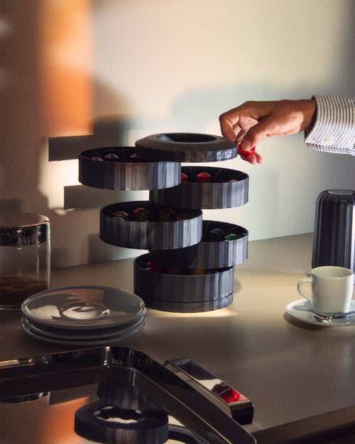 Plissierte Stoffe haben in der Haute Couture Kultstatus, und Michele De Lucchi schmückt seine kleinen Haushaltsgeräte mit eben diesem Kleid. Die Kollektion Plissé verleiht der häuslichen Umgebung einen Hauch von raffinierter Leichtigkeit.