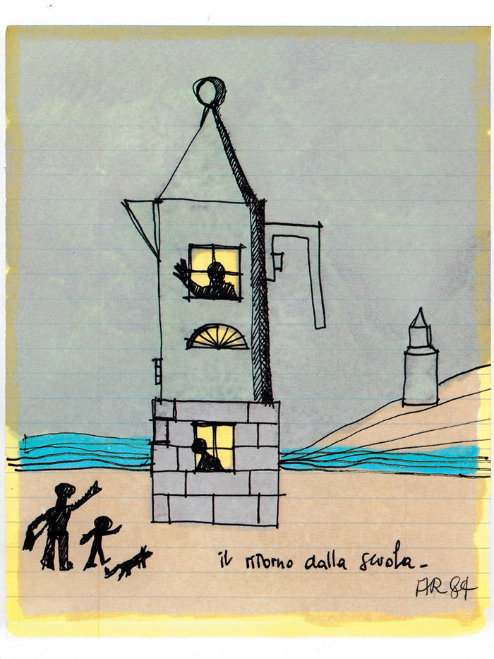 Originalzeichnung von Aldo Rossi, "Il ritorno dalla scuola", 1984