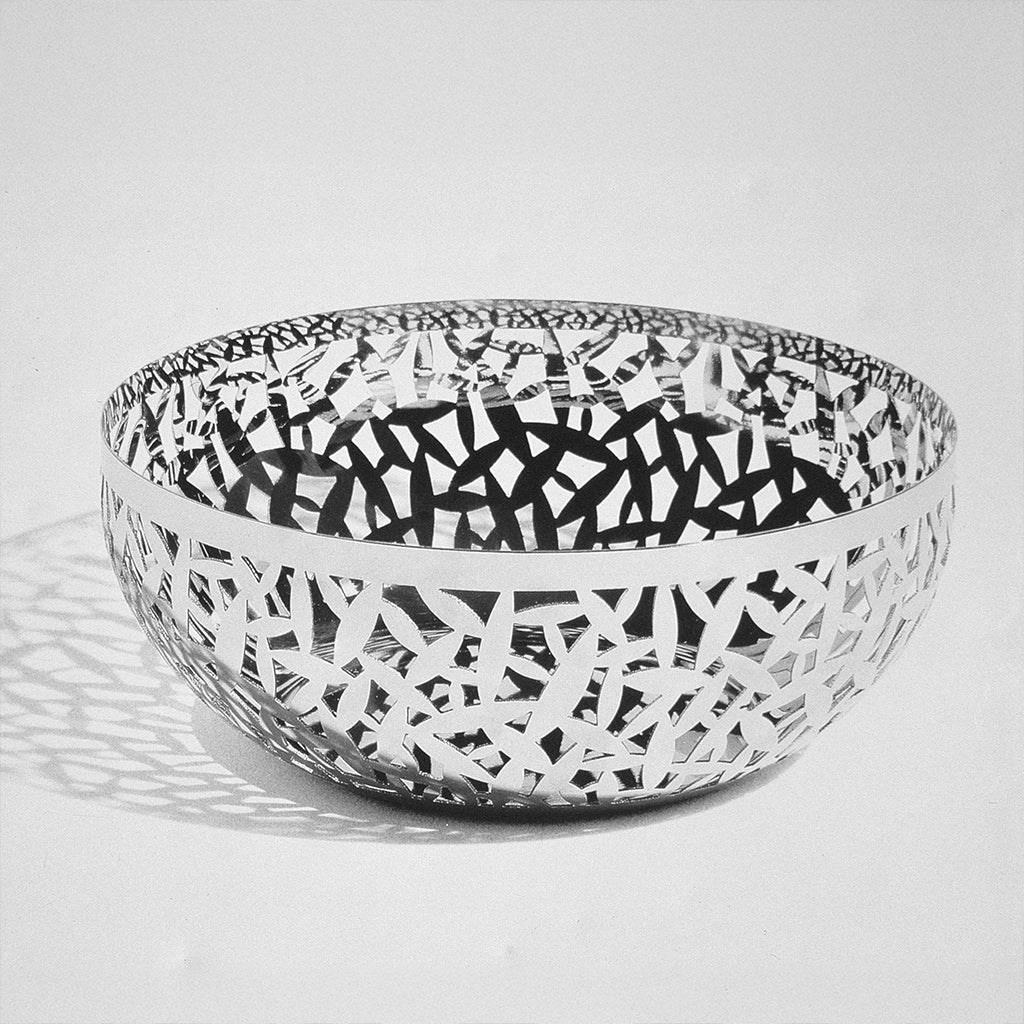 Distinctive for its fretwork, which represents a series of irregularly overlapping leaves, CACTUS! by Marta Sansoni has become one of the most representative objects of Alessi's expertise in the processing of perforated steel.
