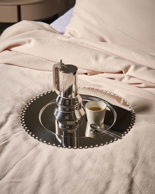 Explorer les origines pour construire l’avenir Né d’une idée d’Alberto Alessi développée en collaboration avec Giulio Iacchetti, Il Tornitore Matto est un projet de recherche qui signe également l’avènement d’une nouvelle marque. Le projet revient aux racines des savoir-faire d’Alessi, mis à l’honneur sous la forme d’une collection d’objets à cheval entre design, industrie et artisanat.Les références qui ont accompagné ce travail d’exploration sont multiples, mais deux d’entre elles se distinguent plus particulièrement. D’un côté, il y a la Wiener Werkstätte, dont la pratique des arts appliqués constitue une référence immuable dans le travail entrepris par Alberto au sein d’Alessi. Fondée en 1903, cet atelier viennois rassemblait bon nombre des figures créatives les plus intéressantes de l’époque, à l’origine d’objets qui témoignent aujourd’hui d’une approche d’un grand raffinement. De l’autre, il y a Alice au pays des merveilles : un monde où les règles sont subverties et où, dans le cas de ce projet, les contraintes habituelles liées à la création industrielle ne s’appliquent plus, laissant libre cours à la créativité humaine. Au total, neuf créateurs ont pris part à ce projet, dont Iacchetti lui-même, pour donner vie au premier chapitre de cette aventure productive qui élève la technique au rang de pure poésie. Les pièces de la collection Il Tornitore Matto sont numérotées par ordre séquentiel et par année de production.