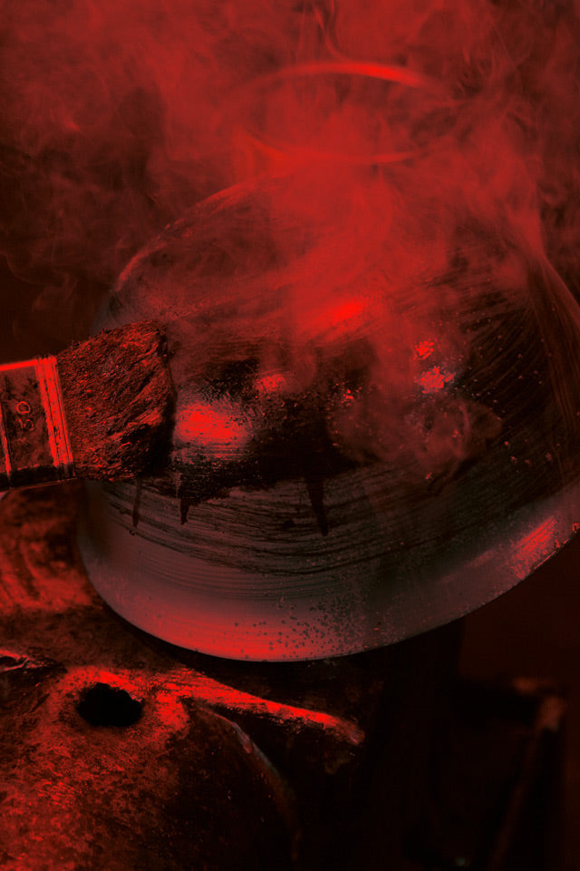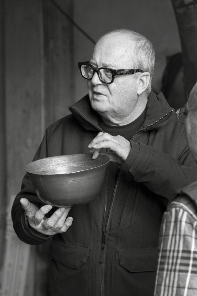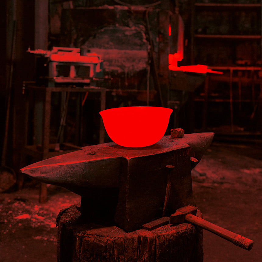 "In this bowl I designed with the Camuni craftsmen, there is the sense of a conversion: a strong, dark metal, transferred from the deadly movements of the lathe to the fire of the forge, and transformed into a serving bowl”.