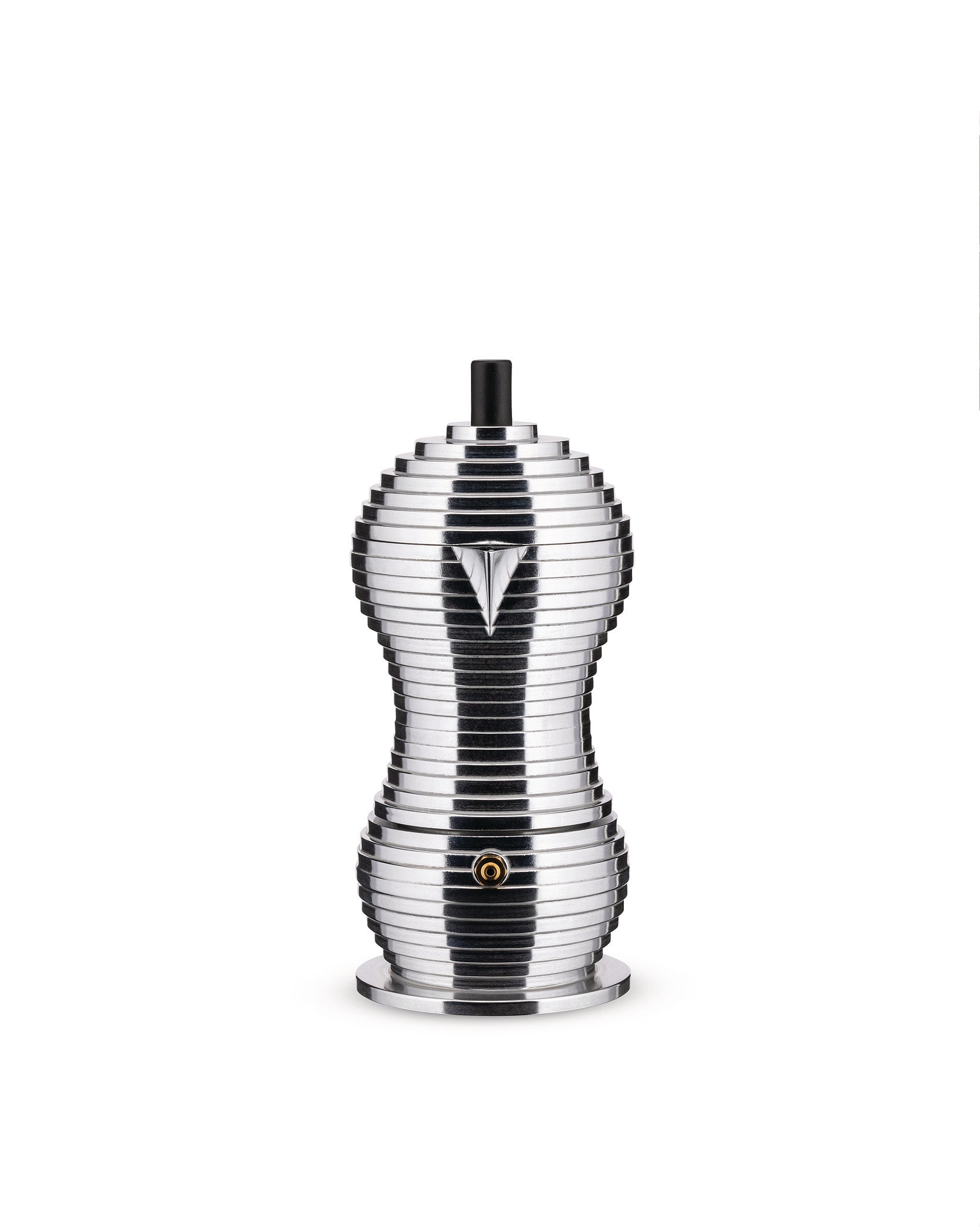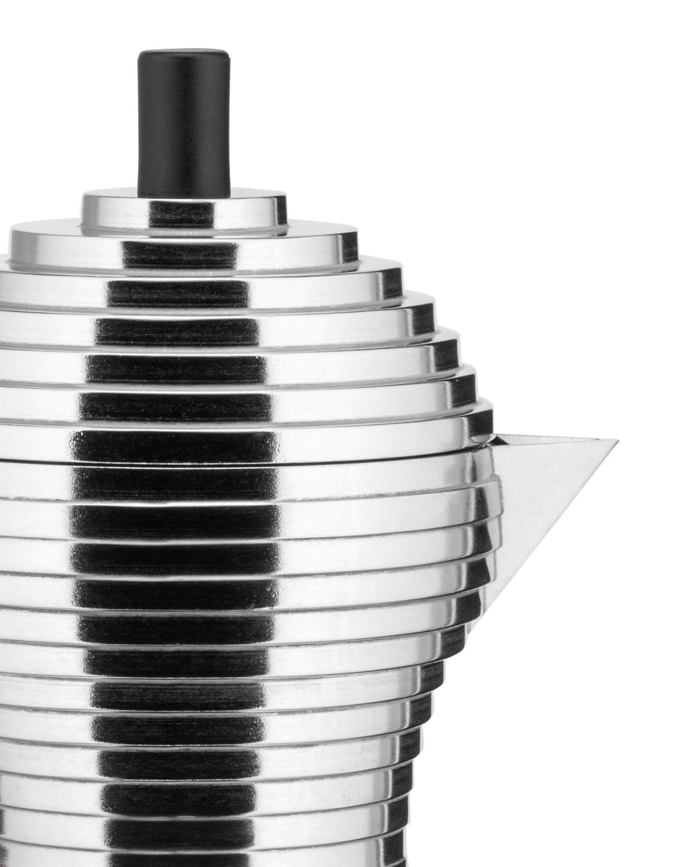Pulcina was designed by Michele De Lucchi at Chioso, his private studio on the shores of Lake Maggiore, which was once a large chicken coop. "Lots of chickens, hens, roosters and chicks. They all died of an epidemic the year I was born, which allows me to say that the only chicken that survived is me," jokes the designer, who was actually inspired by the morphology of mountains for this innovative coffee maker: its stepped surface is reminiscent of contour lines, imaginary lines that are always closed and are used to represent relief in maps and technical drawings.